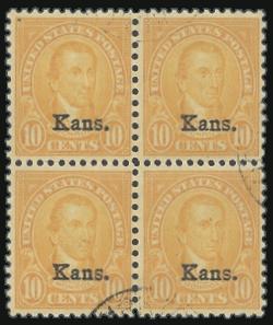 Seven diff used Kansas blocks. F-VF, light cancels (Image)