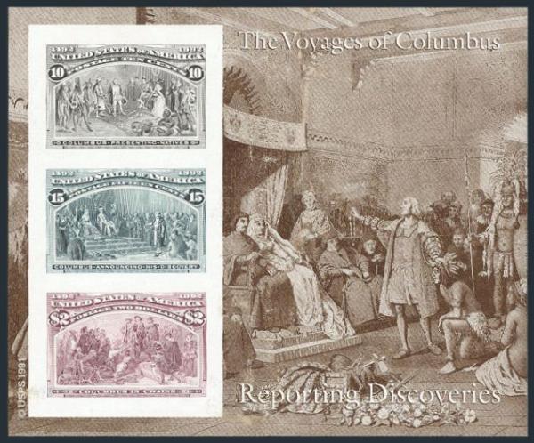 IMPERFORATE COLUMBUS souvenir sheet proof, pristine fresh. XF, NH, typical light bend. Scarce (Image)