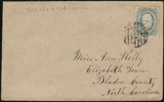 4986 11c image11c, Tied by scarce circular grid cancel on neat cover to Elizabeth Town NC. F, cover a bit reduced (Image) Estimate 150.00+ $Cdn
