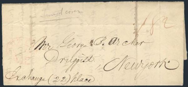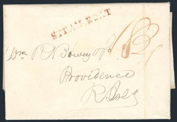 5000   imageStampless 1833 folded cover to Providence R.I. with red STEAMBOAT h/s. F (Image) Estimate 70.00+ $Cdn