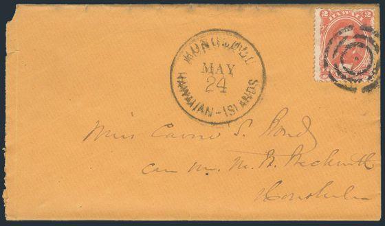 4991 33 image33, Tied by target cancel along with Honolulu H.I. / Paid All Jan 19, 1881 CDS on cover addr to Ann Arbor, Mich (b/s). F-VF cover has tiny tear at top and slightly reduced at right (Image) Estimate 300.00+ $Cdn