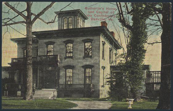 4987   imageUnused coloured postcard circa 1910 depicting SUTHERLIN'S HOME - the last Capitol of the Confederacy in Danville Va. President Jefferson Davis signed his last official proclamation here on 10 April 1865. F (Image) Estimate 65.00+ $Cdn