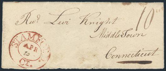 4995   imageStampless 1817 folded letter with red oval Stamford, Ct. 20 Apr cancel & "10" m/s rate to Middletown, Ct. F (Image) Estimate 75.00+ $Cdn