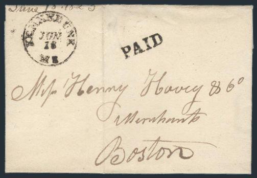 4996   imageStampless 1823 cover with Kennebunk, Me 16 June CDS & "PAID" h/s to Boston. F-VF (Image) Estimate 45.00+ $Cdn