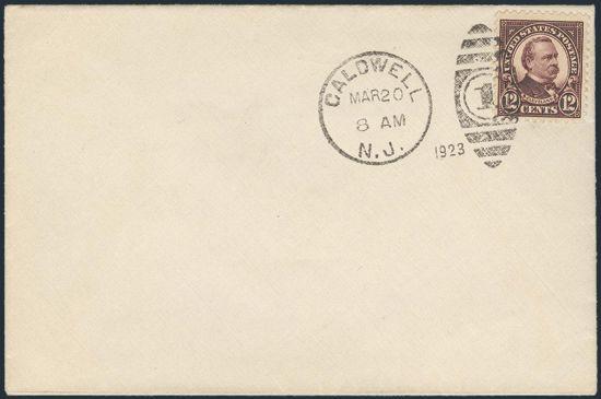 by Caldwell, NJ 20 Mar 1923 duplex cancel on FDC. VF, unaddr. Scarce (Image)