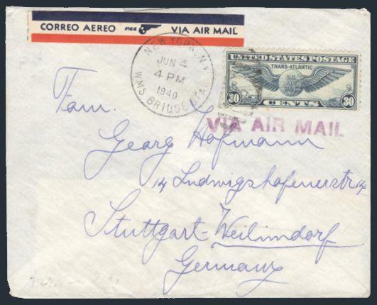 on two diff WWII covers from 1940 to GERMANY. One from Philadelphia, the other from New York. Both have German censor tapes / handstamps on reverse. F-VF (Image)