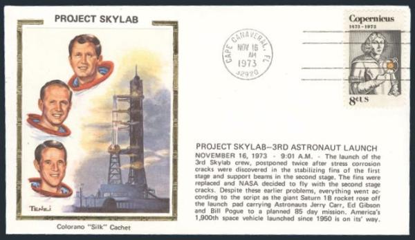 Collection of 10 diff "PROJECT SKYLAB" Colorano silk cacheted covers, all cancelled at Cape Canaveral Fla 1973. Each covers a diff Skylab space event from launching to splashdown. VF (Image)