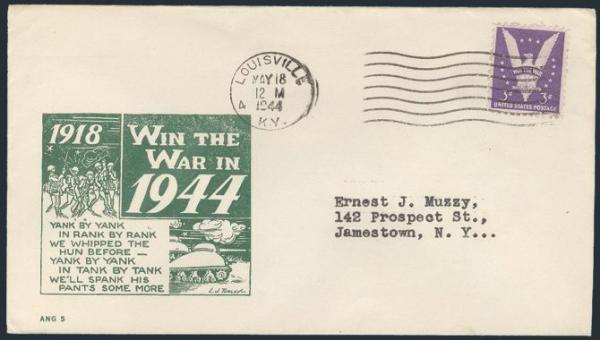 905 (4), Collection of 5 diff WWII Patriotic covers 1943-5 with TANK designed cachets; various cancels. F-VF (Image)