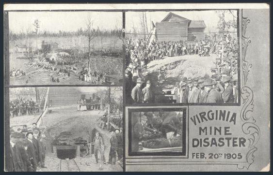 photo postcard depicting scenes of the VIRGINIA MINE DISASTER 20 Feb 1905. F. Scarce (Image)