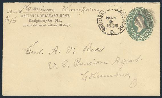 Cancelled by scarce NATIONAL SOLDIERS HOME VA 1895 duplex and NATIONAL MILITARY HOME Ohio 1895 duplex. The second cover has a matching corner card to the cancel. F