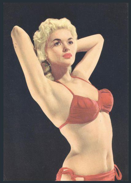 5228   imageThree diff multi-coloured postcards circa 1950's depicting American actress / sex symbol JAYNE MANSFIELD. VF (3) (Image) Estimate 50.00+ $Cdn