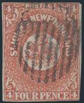 5343 12 image12, Scarce Four Pence Orange with four margins. VF, neat grid cancel, deep rich colour, some minor adhesions on reverse. Has 2024 Greene Foundation Certificate (Image) (View Certificate)