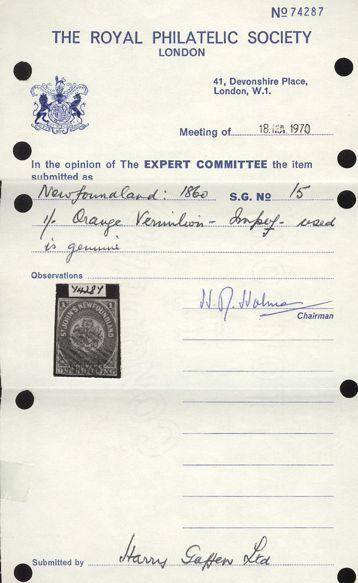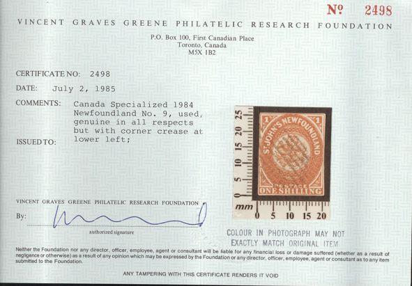 5335 9 image9, One Shilling Scarlet Vermilion, rich colour, neatly cancelled, F-VF, one very slight corner crease. Has 1985 Greene Foundation Certificate. A RARELY OFFERED STAMP (Image) (View Certificate)