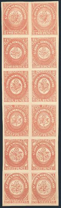 5326 2/9 image2/9, Complete pane of 36 Oneglia Forgeries with values from 2 Pence to 1 Shilling. Has six vertical se-tenant rows with a gutter in the middle. VF. Nice reference item (36 stamps) (Image) Estimate 450.00+ $Cdn