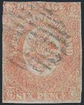 5330 6 image6, Rare Six Pence Scarlet Vermilion, excellent rich colour, lightly cancelled, VG-F. Has 1996 Greene Foundation Certificate (Image) (View Certificate)