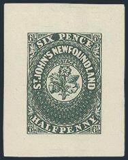 5332 7 image7, Trade Sample Proof in deep green on thick wove paper (32 x 41mm). Pristine fresh, huge jumbo margins. XF. Ex Bedford (Image) Estimate 600.00+ $Cdn