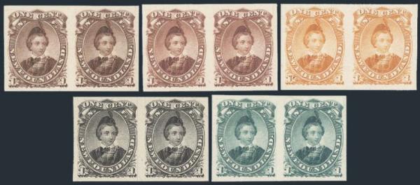 vi, vii, ix, Collection of 5 Trial Colour Plate Proof Pairs on card, each in a diff colour. VF (Image)