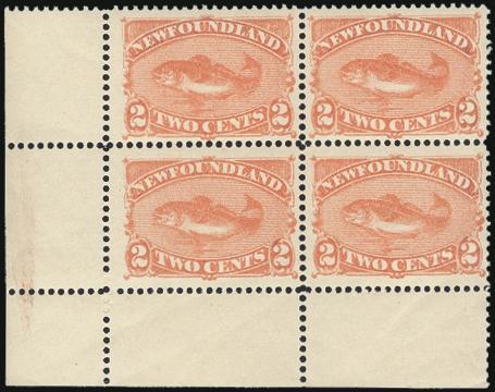 centred LL corner block, fresh rich colour. VF, NH, a few natural gum bends (Image)