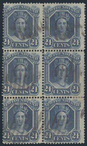used block of 6 with neat grid cancels. F. A rarely seen large multiple (Image)