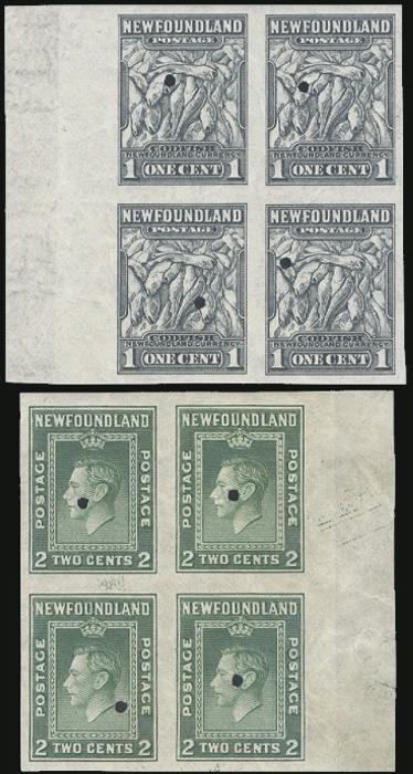 254iv, Imperf margin blocks with small size printer's SECURITY PUNCHES. VF, usual gum bends (254iv some DG) (Image)