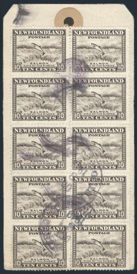 of 10 cancelled by Reg'd 8 Oct, 1940 cancels on Parcel Tag. VF (Image)