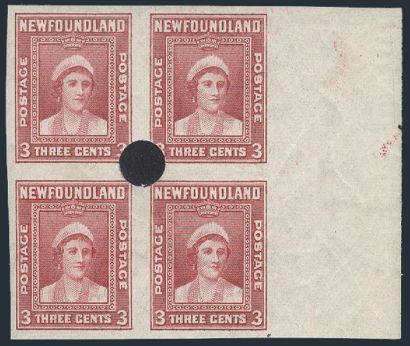 Princess Elizabeth Birthday top margin IMPERF BLOCK with security printing punch holes. VF, NH (Image)