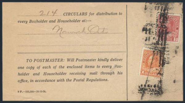 5630 109, 122 image109, 122, Tied by Norwich Ont roller cancel on P.O. Circular Form. F (Image) Estimate 65.00+ $Cdn