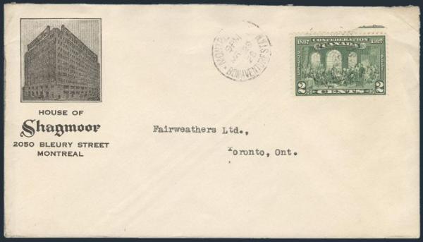 5641 142 image142, Tied by Montreal P.Q. / Bonaventure Sta'n 29 Mar 1928 RPO cancel on b/w photo illustrated advertising cover for House of Shagmoor to Toronto. F-VF (Image) Estimate 45.00+ $Cdn