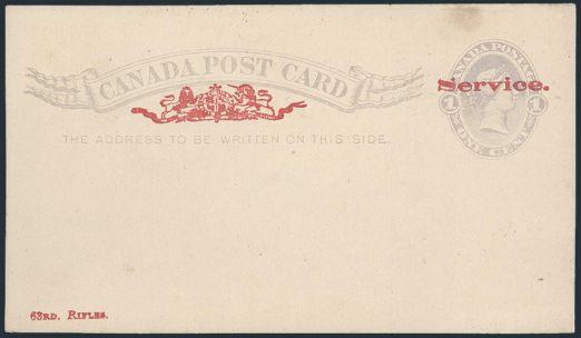 5811   imageCollection of 5 diff unused QV Postal Stationery items all with HENRY HECHLER "SERVICE" and "OFFICIAL" overprints. Interesting lot. F-VF, odd bit of toning (5) (Image) Estimate 200.00+ $Cdn