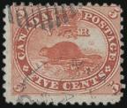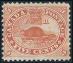 clear example of the MAJOR RE-ENTRY (Position 28, State 10), displaying doubling throughout the design. Deep rich colour, F. Guarantee b/s. THE MOST SOUGHT AFTER VARIETY ON A 5¢ BEAVER (Image)