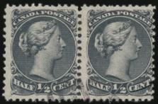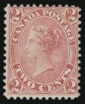 Imperforate pair of the 2¢ Rose, full margins (close at top), fresh rich colour, the left stamp shows the ENGRAVER'S SLIP variety at the lower left and the right stamp has the DASH IN THE LR "2" variety. F-VF, slight thin. Very scarce - only 50 pairs
