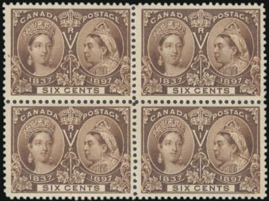 6105 55 image55, Very pretty UL corner block of 6 of the 6ยข Jubilee. Fresh, F-VF, NH. A NICE SHOWPIECE! (Image) Cat 3,600.00