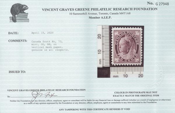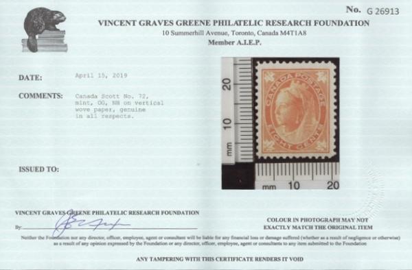 6190 72 image72, Fresh rich colour, nicely centred, full pristine gum, VF, NH. Has 2019 Greene Foundation Certificate (Image) (View Certificate)