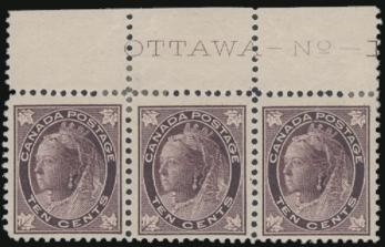 6195 73ii image73ii, Nicely centred Plate 1 Imprint strip of 3 on horiz wove paper. Clear example of this distinctive paper with characteristic white OG. VF (Image) Cat 2,400.00+