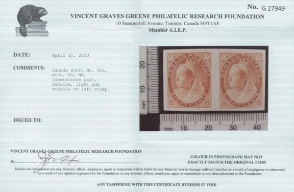 Imperforate Pair with large margins, fresh colour, XF. Has 2021 Greene Foundation Certificate (Image) (View Certificate)