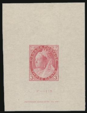 DIE PROOF in dull rose carmine (49x64mm) showing die "F-113" number and American Bank Note Co. Ottawa imprint. VF (Image)