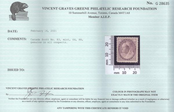 Attractive mint 10¢ QV Numeral with sharp impression. VF, NH. Has 2021 Greene Foundation Certificate (Image) (View Certificate)