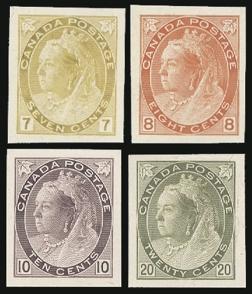 Complete QV Numeral set of imperforate PROOFS on card. Excellent margins, fresh colours. VF. Scarce (Image)