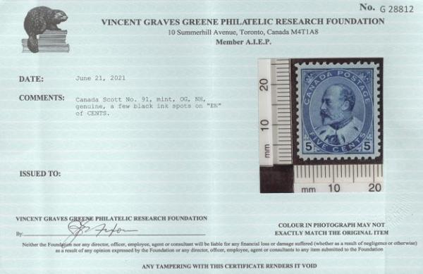 6240 91 image91, Beautifully centered, fresh rich colour, VF, NH, a few very trivial spots on front side. Has 2021 Greene Foundation Certificate (Image) (View Certificate)
