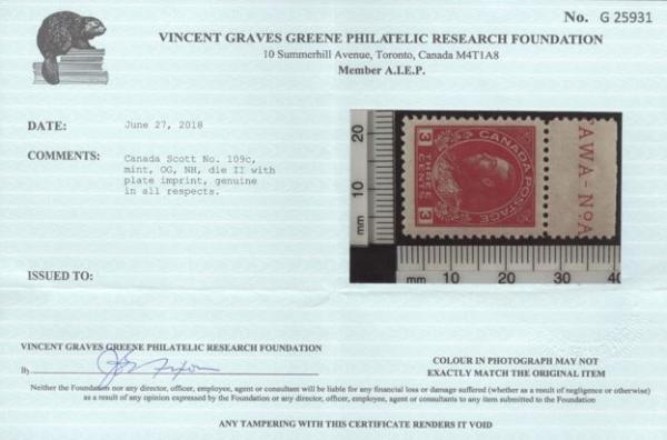 Beautiful top margin plate imprint single of the better DIE II. VF, NH. Has 2018 Greene Foundation Certificate (Image) (View Certificate)