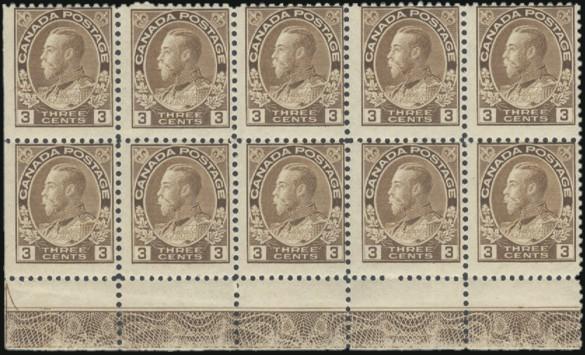 bottom corner margin block of 10 with TYPE B LATHEWORK showing partial doubling under the far right stamp. F, NH (Image)