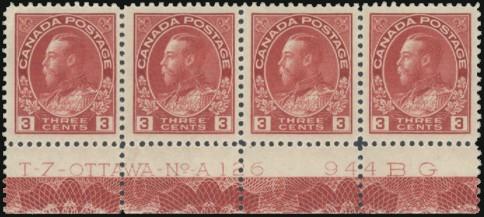 sheet margin Plate No A126 strip of 4 with full TYPE D LATHEWORK. Fresh, F-VF, 2 stamps are NH (Image)