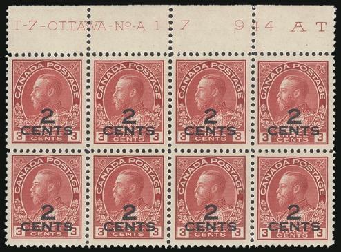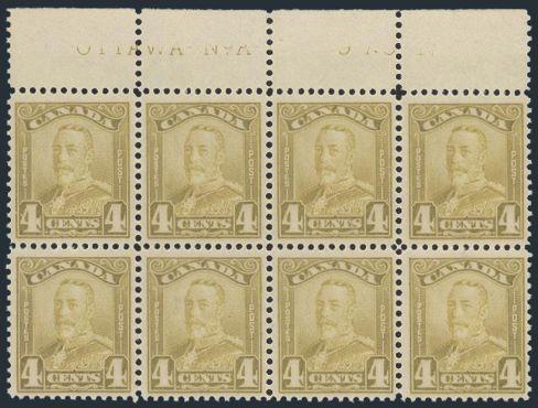 margin Plate No A-117 block of 8. Lovely fresh colour, exceptional centering. VF, NH, trivial bit of offset on gum (Image)
