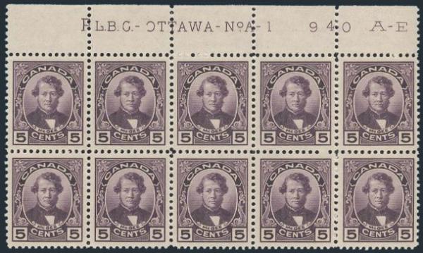margin Plate #A1 Imprint Block of 10, perfectly centered, pristine fresh, XF, NH. A CHOICE ITEM! (Image)