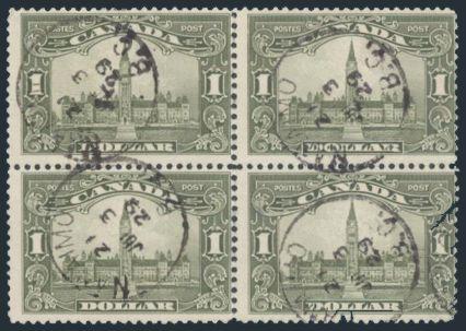 6438 159 image159, Used $1 Parliament block with neat Nanaimo BC 3 July, 1929 CDS's. F (Image) Estimate 135.00+ $Cdn
