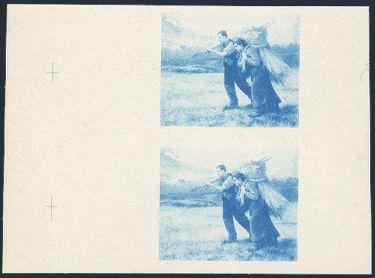 of 4 diff imperforate PROGRESSIVE COLOUR PLATE PROOFS, each in a sheet margin vertical pair. All with inscriptions omitted and each in a diff colour. VF. A scarce group