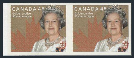 IMPERF Plate Block of the 48¢ QE Golden Jubilee. VF, NH, crease in bottom pair and vertical bend at right (Image)