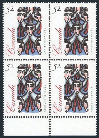 Margin block of the unissued 52¢ Xmas. The stamp was printed in anticipation of a rate increase which was not approved. Some stamps ended up in private hands. VF, NH
