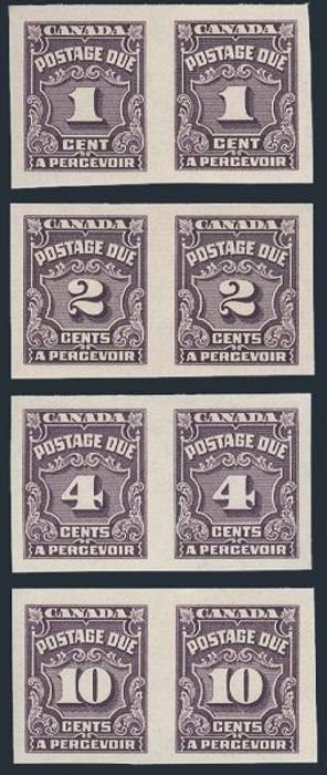 6775 J15a-20a imageJ15a-20a, Complete set of 4 diff horiz IMPERFORATE POSTAGE DUE PAIRS, pristine fresh, excellent margins. XF, NH. Only 100 sets exist (Image) Cat 1,800.00