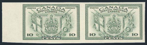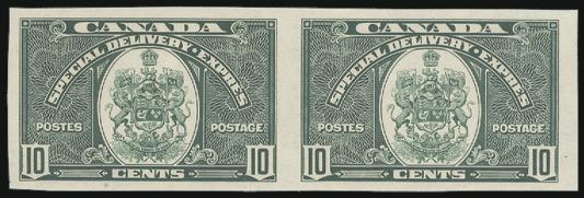 6759 E10a imageE10a, Sheet margin IMPERFORATE PAIR. Fresh, rich colour, XF, LH. Only 75 pairs exist (Image) Cat 800.00